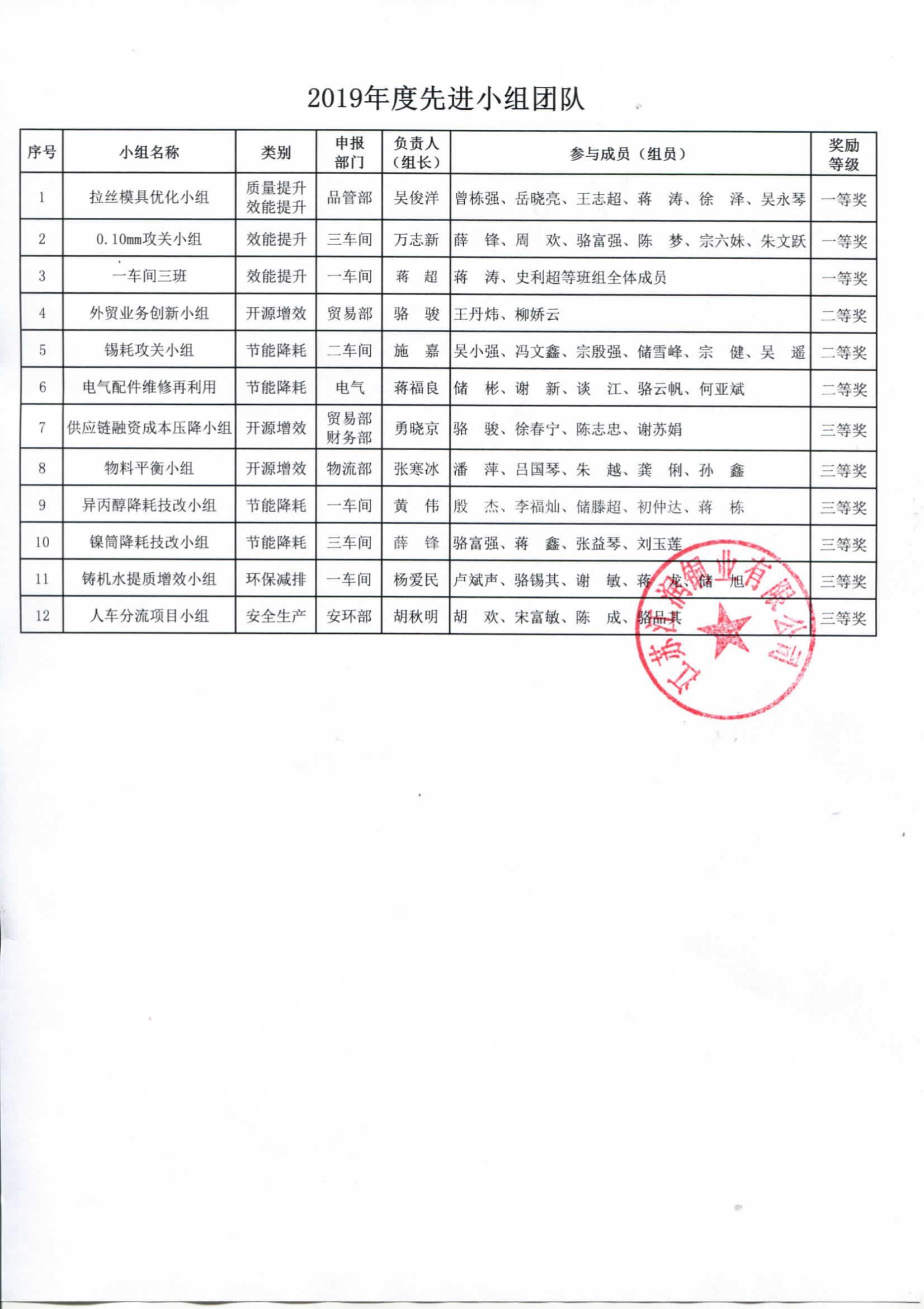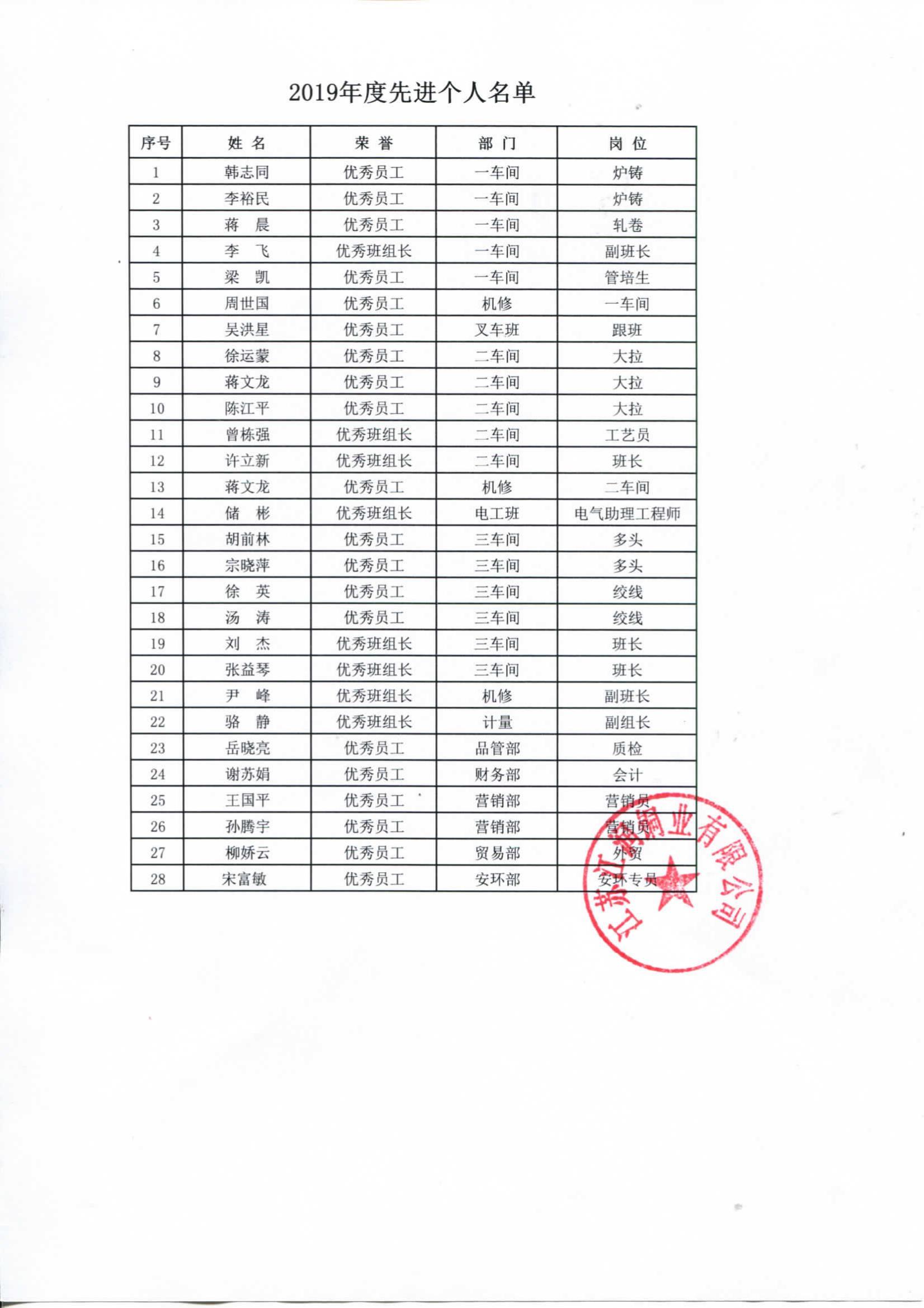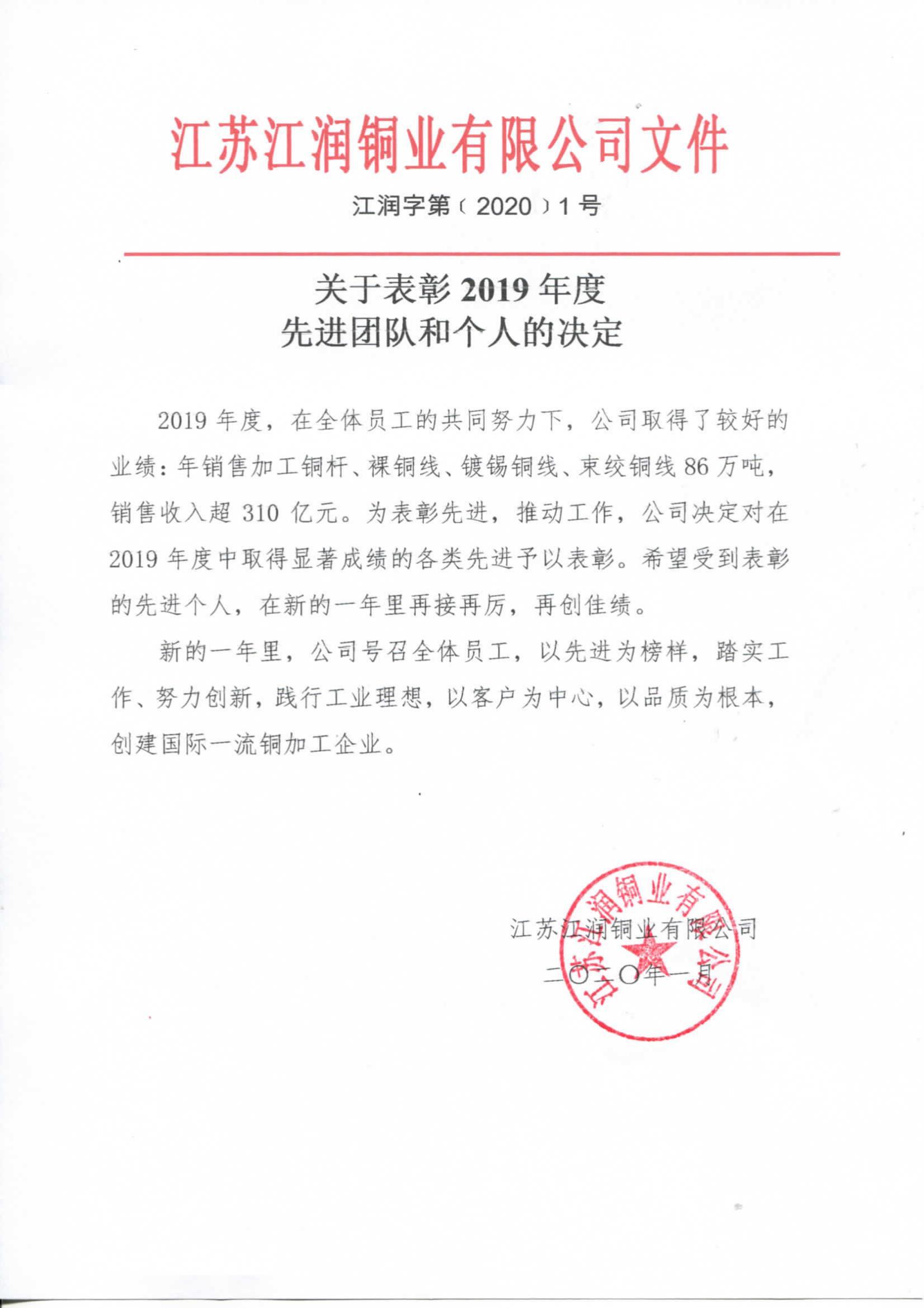2019年度江潤銅業(yè)先進(jìn)表彰