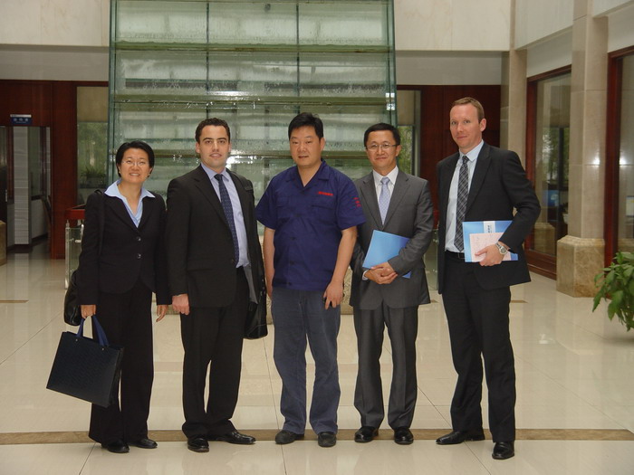 2011年6月14日, 公司總經理駱偉棟在行政大樓會議室會見了BARCLAYS CAPITAL(巴克萊銀行)的執行董事JAMES GROVES、IAIN MACRAE和栢銀資源有限公司的運營總裁吳偉等一行,雙方就期貨保值和現貨采購等業務交換了意見。 駱總首先向來訪一行人介紹了江蘇江潤銅業有限公司概況以及2010年與今年第一季度的生產與銷售情況。他表示,只有做好保值,才能應對企業在銅價漲跌的行業風險。接著,JAMES也介紹了巴克萊銀行在中國的投資意向,以及未來的投資方向。栢銀資源的運營總裁吳偉也和駱總探討了現貨銅業務。隨后雙方共同參觀生產車間。 臨走之前,駱總希望能盡快與巴克萊銀行及栢銀資源建立合作。